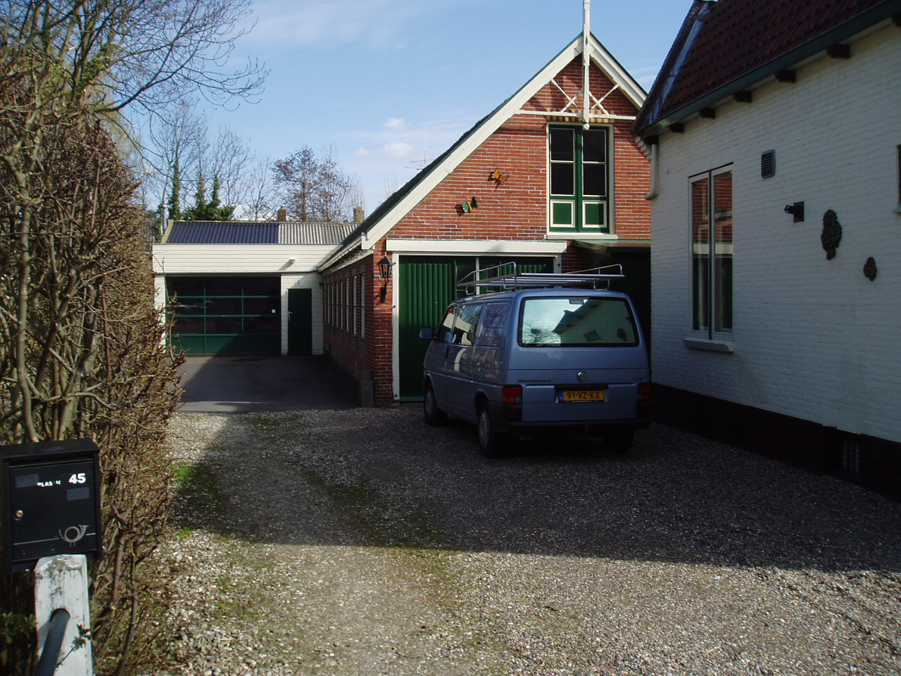 Achter het woonhuis: de 3 schuren waarin de productie van Europlastic plaatsvond. Dorpsstraat 45, Landsmeer Noord Holland.